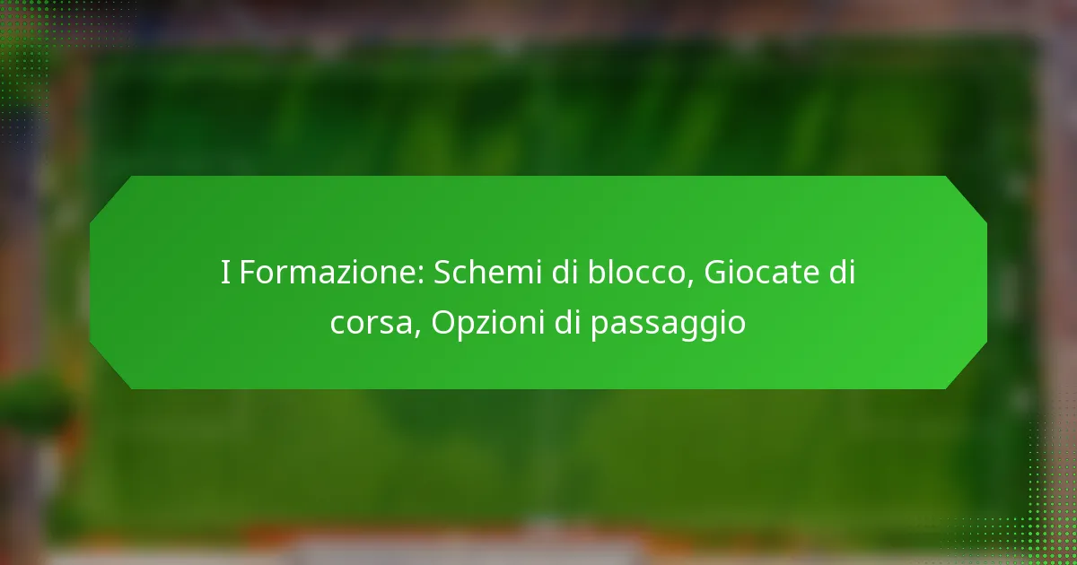 La formazione I utilizza principalmente due schemi di blocco: il blocco a zona e il blocco a uomo. Ogni schema ha caratteristiche distinte che influenzano il modo in cui i lineman offensivi interagiscono con i difensori, impattando l’efficacia dei giochi di corsa e di passaggio.